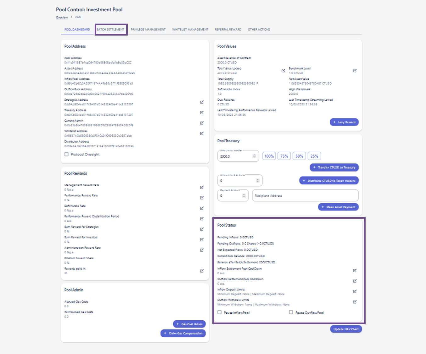 Pending In- and Outflows may be checked from the **batch settlement** panel or within the Pool Dashboard.